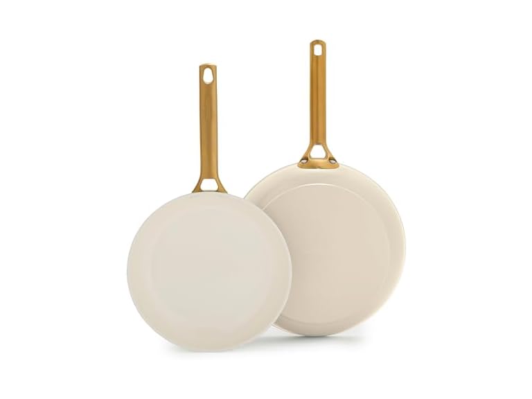 - (1) GreenPan Swift Nonstick 10” and 12” Frying Pan Skillet Set, Ceramic PFAS-Free 2 Piece Kitchen Cooking Set, Oven & Broiler Safe to 600°F, Dishwasher Safe Cookware, Cream