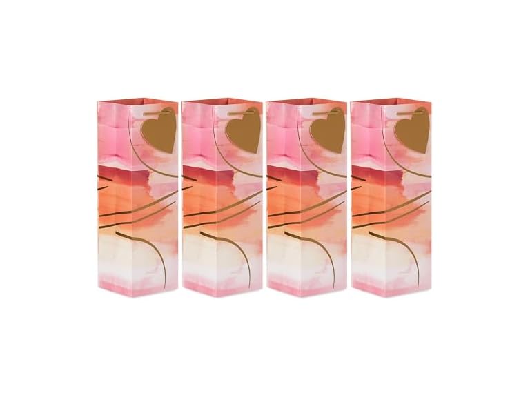 - (1) Hallmark Bottle Gift Bags, 4-Pack with Gold Heart Gift Tags (Peach, Pink, Purple Watercolor) for Anniversary, Bridal Showers, Any Day