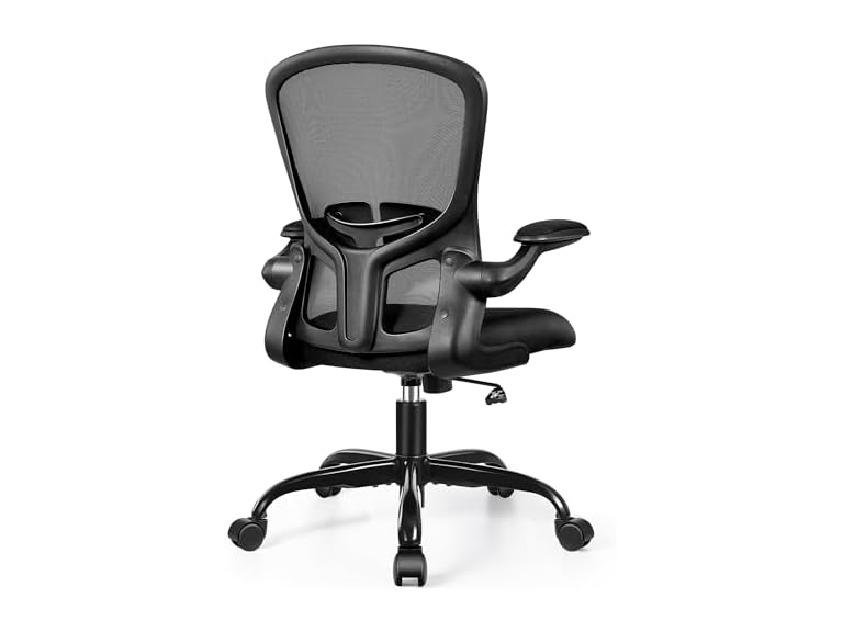 - Flip-up Armrests: The home desk chair with 90° Adjustable flip-up arms can place the chair under the desk to save space. Suitable for office, bedroom, study room and living room