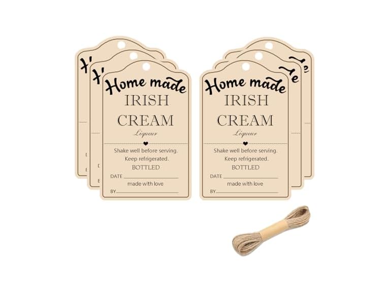 - 50 Pack Homemade Irish Cream Liqueur Tags with String 1.5√ó2.5 inch Irish Cream Liqueur Instruction Labels for Handcrafted Liqueur Bottles,Holiday Christmas Gifts,Jar Kitchen Pantry