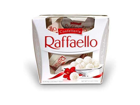 - Raffaello confections are a harmonious blend of carefully selected ingredients, including white Californian almonds and coconut from the Pacific islands.