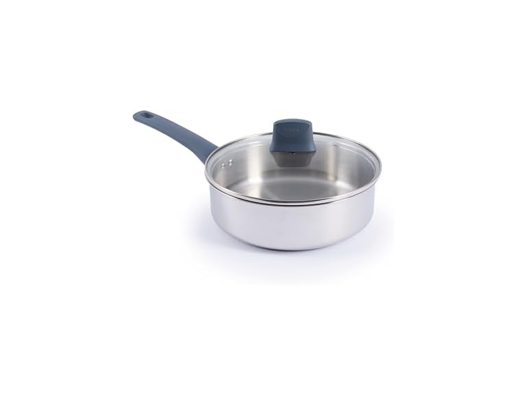 - (1) T-fal Essentials Stainless Steel Saute Pan with Lid 3.5 Quart, Induction Compatible, Oven Safe 350F, Perfect For Sautรฉing, Browning, & Simmering, Saucepan, Measuring Marks, Dishwasher Safe Silver/Blue