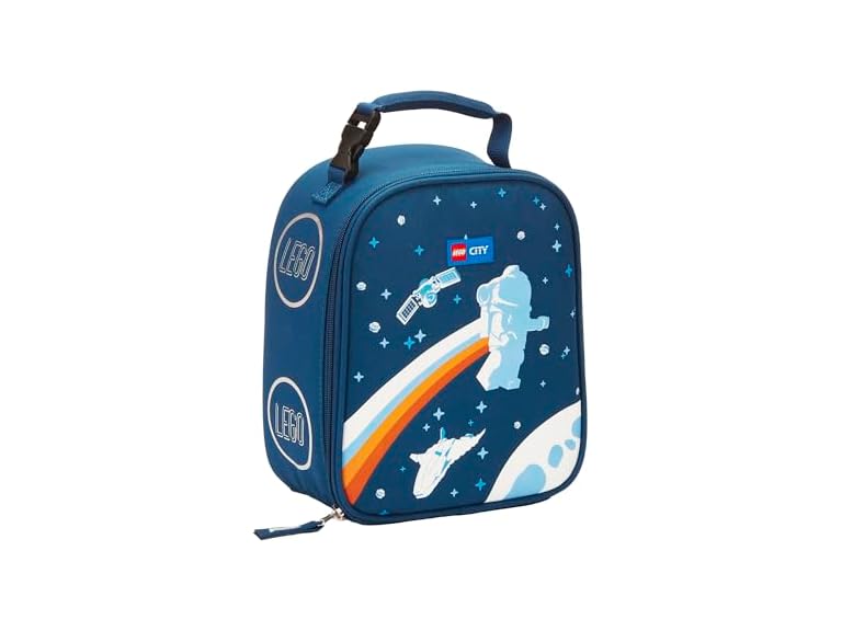 - OFFICIALLY LICENSED LEGO CITY LUNCHBOX: A fun and convenient soft LEGO insulated lunch bag for carrying school lunch and snack bags or on-the-go travel meals. Features classic city space mission design. For back to school, camp or work, girls and boys, men, and women, carry your food and drinks in style with this LEGO kids and adult lunch box. Recommended for ages 3+.