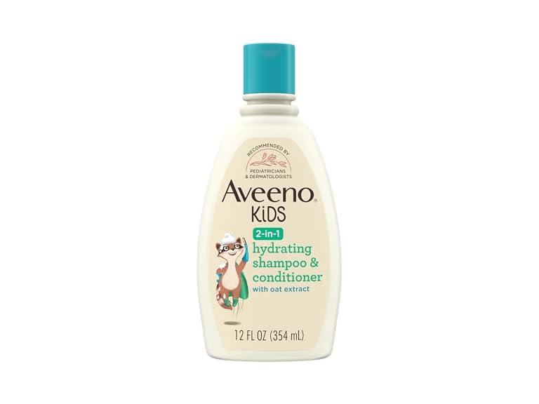- 12-fluid ounce bottle of Aveeno Kids 2-in-1 Hydrating Shampoo & Conditioner for kids, with oat extract & a gentle scent, to gently cleanse, condition & detangle kids hair