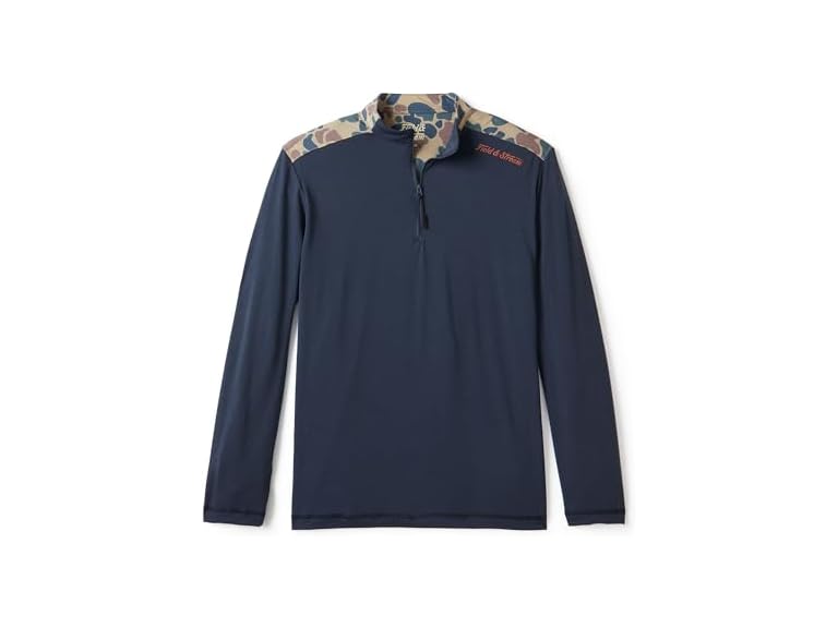 - (1) Field & Stream Men's Roll Cast Performance Quarter Zip with Drirelease®, Navy/Camo, X-Large