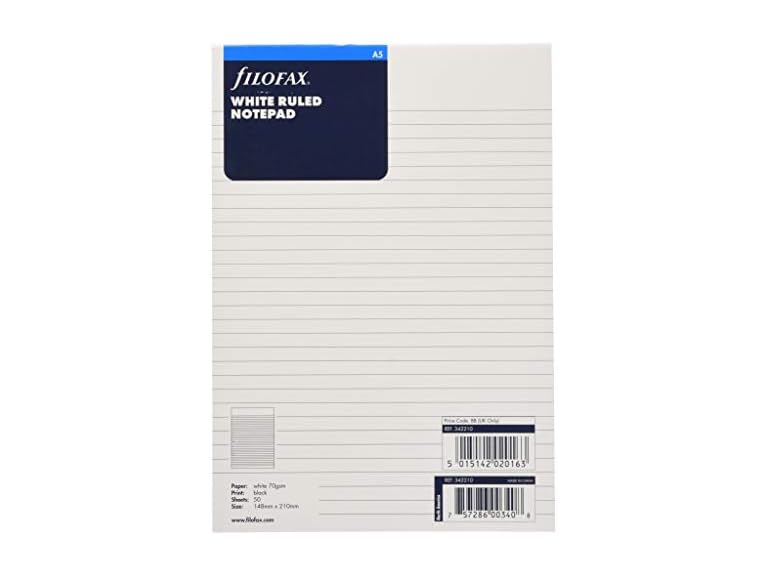 - Filofax 342210 Personal Organizer, Refill, A5, Memo, Ruled, White