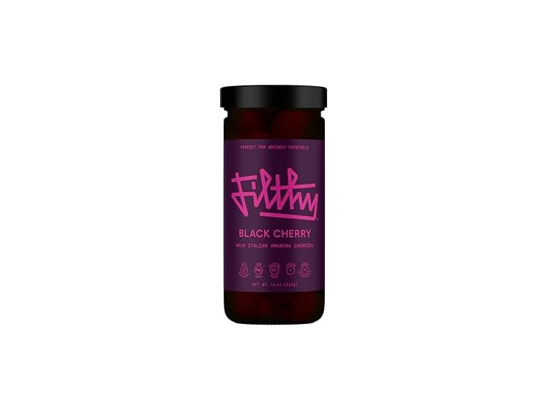 - Filthy Cocktail Amarena Black Cherries, Premium Cocktail Garnish, All Natural Wild Italian Amarena Black Cherry, Non-GMO, Gluten Free, Vegan, Slow-Cooked, 11 Oz Jar, 45 Cherries