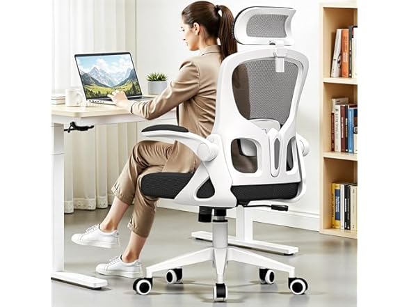 - 【Smart Space-Saving Design】Perfect for small offices and students, the 90° flip-up armrests allow you to slide this computer chair entirely under your computer desk to save room. It serves as an ideal study chair or professional executive office chair that fits seamlessly into compact spaces. The 360° swivel chair base provides total freedom of movement.