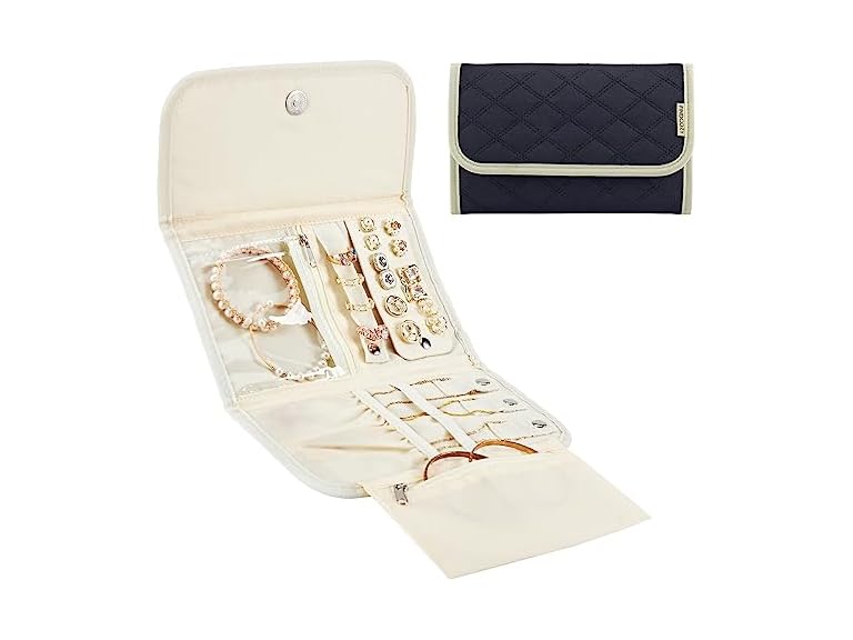 - (1) FINDCOZY Jewelry Travel Organizer, Foldable Jewelry Case for Necklaces, Earrings, Rings, Bracelets, Black