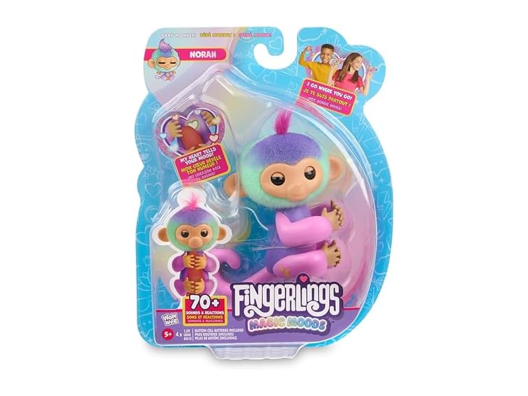 - (1) Fingerlings Magic Moods Interactive Baby Monkey, Norah (Teal & Purple), Tells Fortune and Mood, 70+ Sounds & Reactions (Ages 5+)