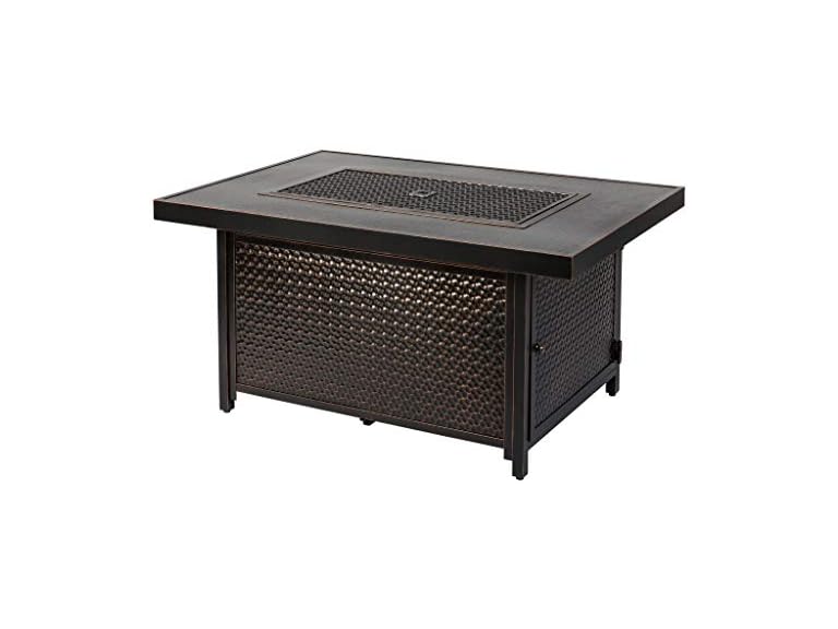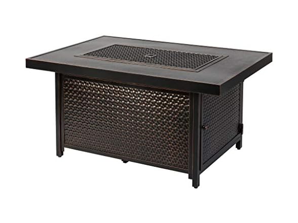 - Fire Sense 62750 Weyland Hammered Aluminum Convertible Gas Fire Pit Table 55000 BTU Multifunctional Outdoor Firepit with Fire Bowl Lid, Nylon Cover & Clear Fire Glass Bronze Finish - Rectangular 48"