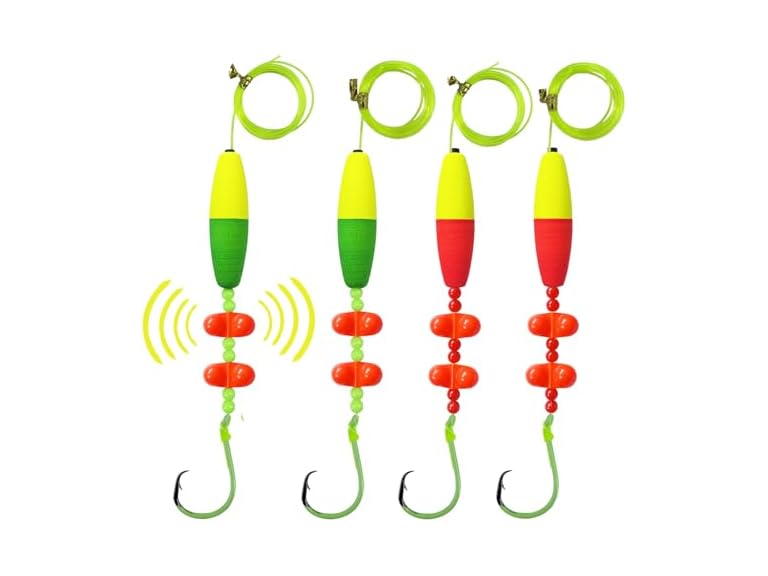 - 【Brightly-colored Match】Brightly-colored catfish bobbers,catfish rattles and fluorescent green painted circle hooks,can further enhance the visibility of the santee cooper rigs for catfish fishing.The more effective combination for attracting catfish in different fishing conditions.