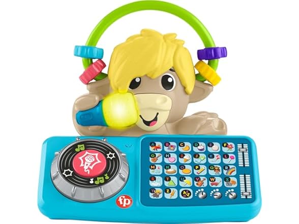 - Press the DJ table letter buttons & spin the turntable to activate fun music, sounds & phrases; light-up microphone syncs to the beat