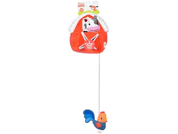 - (1) Fisher-Price for Pets Farmhouse Burrow Dog Toy with Removable Mini Rooster and Mini Cow Plush Toys, Developmental Toys for Dogs