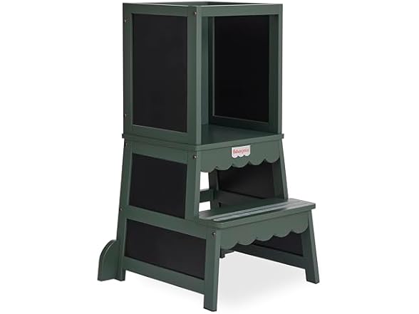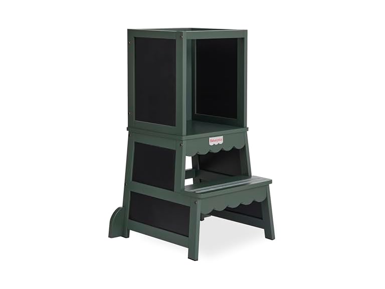 - Fisher-Price Wonderstep Step Stool – 2-in-1 Convertible Toddler Tower & Step Stool, with Blackboard, Solid Pinewood, Portable & Easy to Assemble, in Forest Green Finish