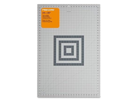 This Fiskars Self Healing Craft Cutting Mat is perfectly sized for cutting extra-large fabric squares, long fabric strips, and full widths of fabric directly from the bolt. Ideal for sewing, quilting, scrapbook, stationery, and gift wrapping, this extra large cutting board protects your work surface from the blade at hand, while keeping the project you're working on straight and aligned. The grid design of this flexible cutting board conveniently allows you to cut and measure in one step. The mat is double-sided for extended life and is made with a durable yet flexible material, so you can store small and cut big. Store flat away from sunlight, heat, and cold; Clean with warm water and mild soap. Start Your Craft Projects with the Right Tools By constantly seeking ways to improve creators' pain points, Fiskars makes it easy for you to explore exciting new territory with simple, uniquely useful tools designed to last a lifetime. From cutting tools for sewing and quilting, including scissors and shears, to crafting tools ranging from stamps to stencils and more, our creating portfolio also includes new precision DIY tools for those working with more sophisticated materials, as well as paper cutting tools such as punches and trimmers, all designed to help you do what you do best - express yourself. Whether you want to create your own style or put a stamp on the place you call home, our intuitive, quality tools are designed with your passion in mind.