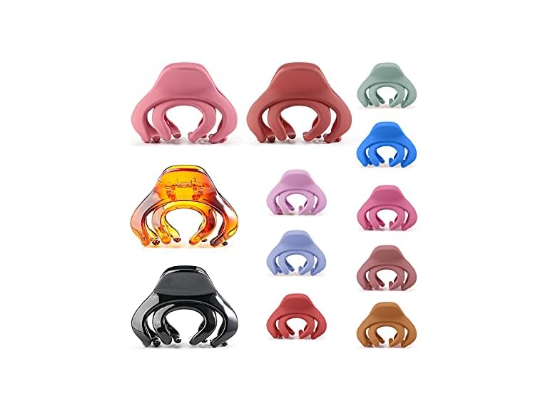 - Package Included: This set of 4 pieces large octopus-style hair clips (3in/7.6cm) & 8 pieces small hair claw clips (1.57in/4cm) is perfect for securing easy updos or sectioning hair for heat styling. Strong, interlocking teeth hold even thick hair in place without snagging.