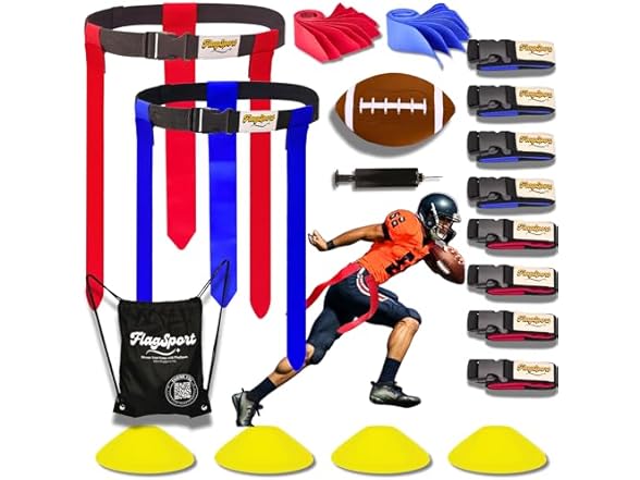 - (1) FlagSport Flag Football Belts - Flag Football Belt kit Set For Kids Teen Youth Adults and Athletes, Capture The Flag Bundle, Flags For Flag Football Game Sports, Training Equipment, Football Gear.
