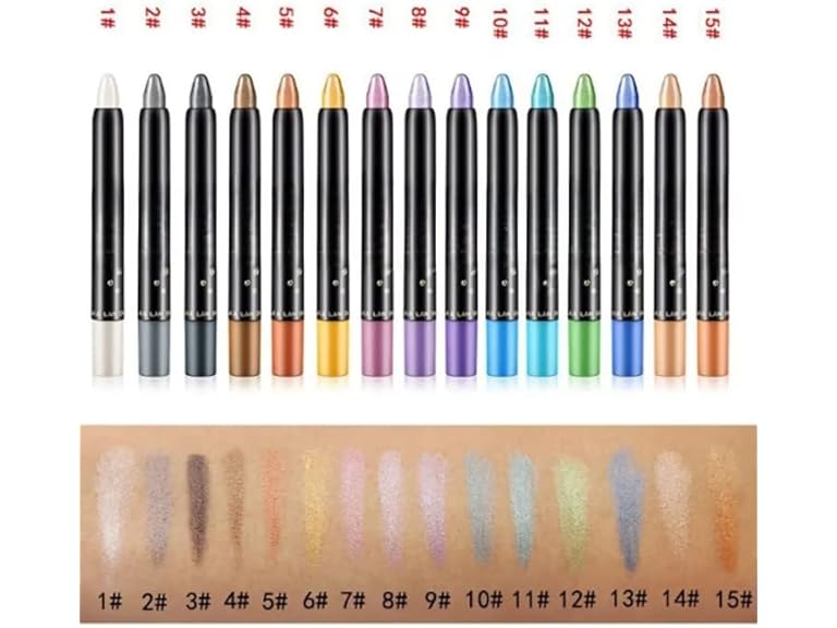 - Flashstar Eyelid Color Eyeshadow Pencil, 15 Color Set - Waterproof Glitter Eye Shadow Eyeliner Pen for Women, Metallic Eyeliner Kit, Pearl Eyeliner