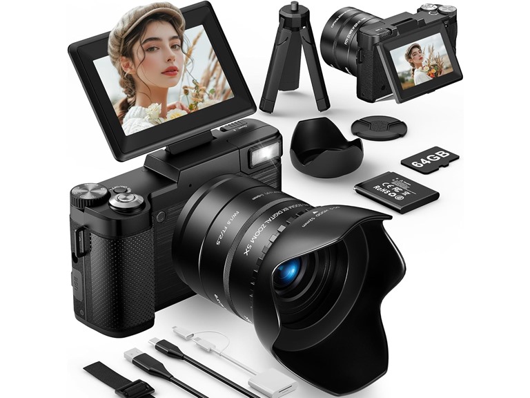 - 【Be Used for Live Streaming】The webcam function of this digital camera for photography works seamlessly for video calls and streaming, and transferring files to your computer is a breeze with the USB cable. Equipped with a stable tripod, ideal for steady shots, time-lapse, or hands-free vlogging.