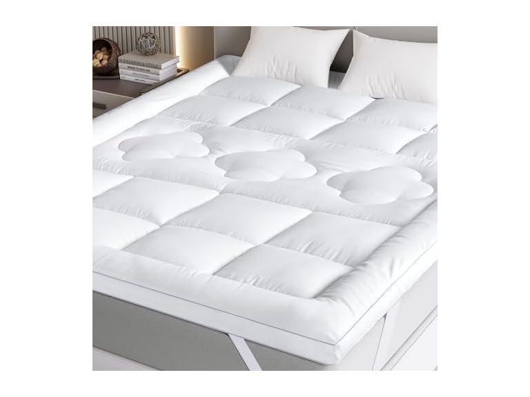 - Unmatched Softness: Indulge in sleeping on clouds feel with extra thick snow down alternative filling, which creates a soft and cozy surface that relaxes your body, with a weight of up to 800 GSM, the FLEXPEDIC Queen size mattress topper's alternative down fiber filling provides more comfort, softness and cushioning than a foam mattress!