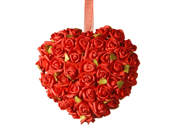 - Features bright and beautiful flower blooms of tiny red roses in tight clusters all around to form a fluffy heart-shaped decoration.
