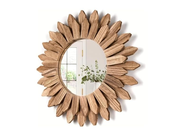 - (1) Country-Style Wooden Frame Wall Mirror, Suitable for Farmhouse-Style Decoration, Suitable for Entrance Hall, Bedroom, Bathroom, Dressing Table. Flower-Shaped Wall Mirror