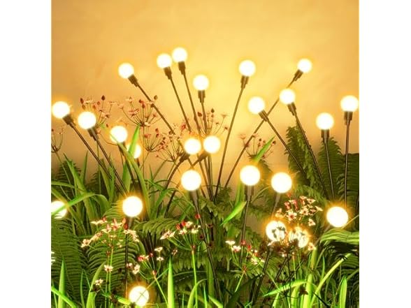 - (1) flumy Flumy Solar Garden Lights Outdoor - 8 Pack 64 LED Firefly Lights Waterproof, Garden Decorations for Yard Patio Pathway Lawn Outside, Unique Gifts for Grandma Women, Solar Decor Warm White