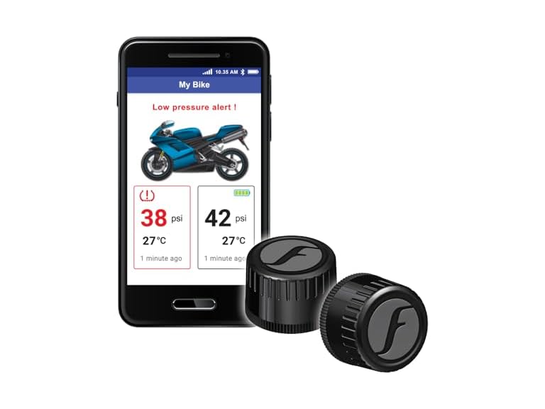 - Intelligent Bluetooth tyre pressure control system - Suitable for any motorcycle, our FOBO tyre pressure control system ensures safe driving by monitoring the tyre pressure using a tyre pressure gauge / tyre pressure sensor pressure gauge.