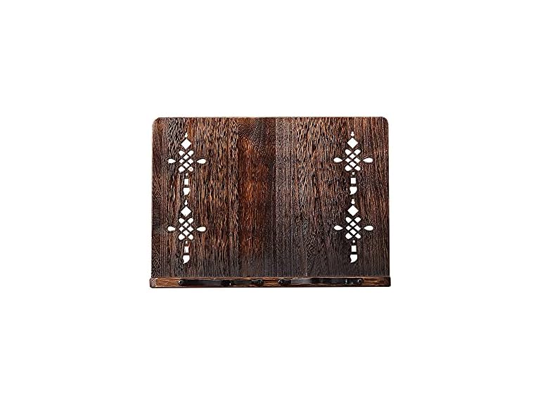 - UNIQUE PATTERN & SIZE: The book reading rest holders have two unique retro hollow patterns and two different sizes for your choice. Small size: 11.8” x8.7”x2” , Large size: 13.2”x9.5”x2”.