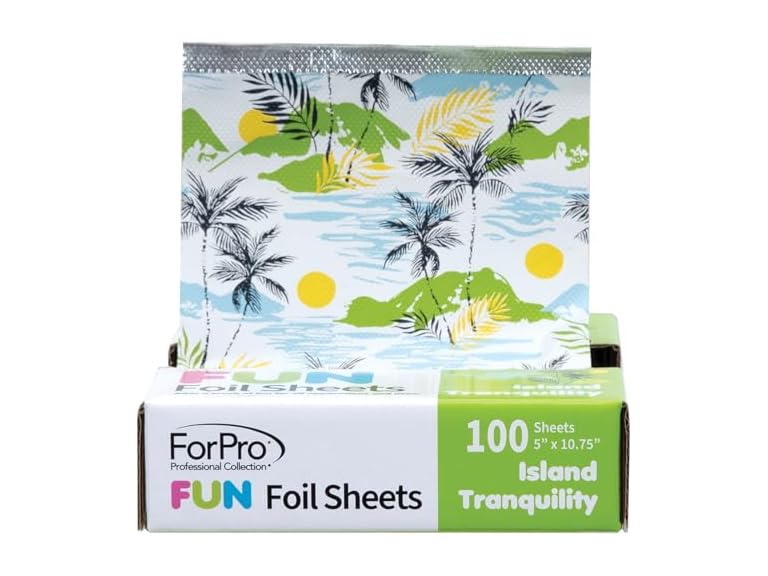 - ForPro FUN Island Tranquility 5" Foil Sheets, Aluminum Hair Foils for Color Application and Highlighting Services, Food Safe, Pop-Up Dispenser, 5” W x 10.75” L, 100-Count