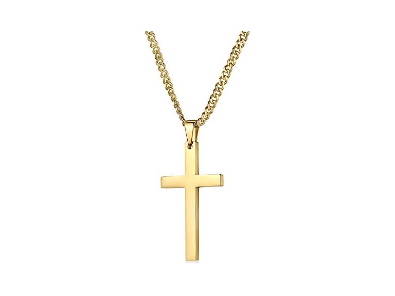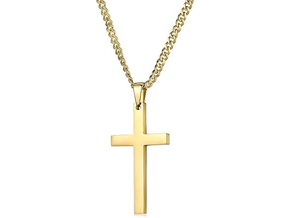 - (1) FOSIR Cross Necklace for Men, Gold Stainless Steel Mens Cross Pendant Necklaces for Men Curb Chain 24 Inches
