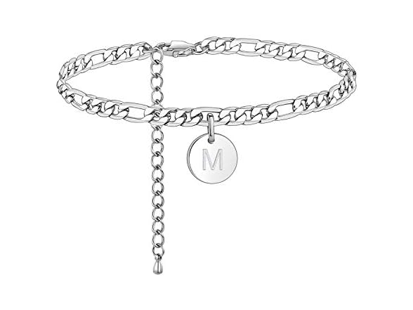 - (1) FOSIR Silver Initial Anklets for Women, Surgical Steel Ankle Bracelets for Women Figaro Chain Anklet, Letter M