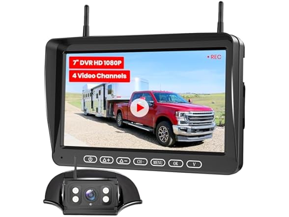 - Enhanced 1080P & Night Vision: The 1080P HD RV camera with infrared night vision and equipped with CMOS image sensor, automatically adjusts brightness, reduces glare, and obtains unparalleled visibility and clear images, helping you control road conditions day or night. Perfect for pickup trucks, horse trailers, SUVs, vans, etc...