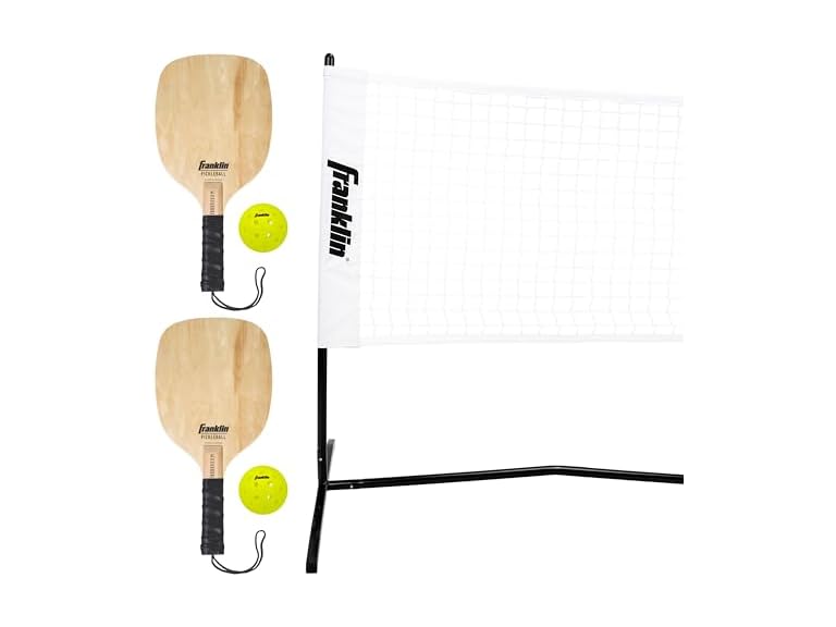 - (1) Franklin Sports Complete Half Court Size Pickleball Net Set - Includes 10ft Net, (2) Paddles, and (2) X-40 USA Pickleball Approved Balls