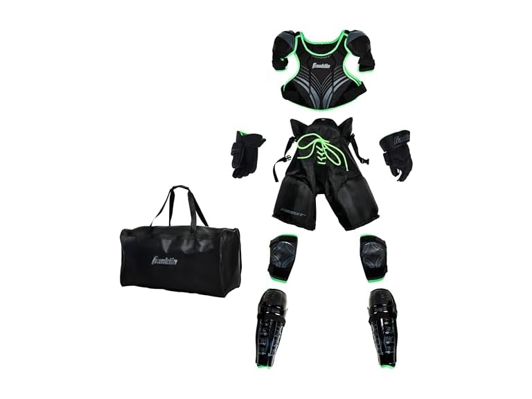 Looking for the ultimate youth ice hockey protective gear set? Look no further! This Franklin Sports Full Youth Protective Set is exactly what your young player needs to stay protected and comfortable while dominating the rink. From shin guards to chest protector, this comprehensive set provides all-around protection for every fall, and skate maneuver. Each piece is designed to absorb impact and reduce the risk of injury, giving both players and parents peace of mind. Durability is key when it comes to protective gear, and this set doesn't disappoint. With tough materials like molded plastic and high-density foam, every piece is built to withstand the bumps and bruises that come with intense games and practices. Comfort is just as important as protection, and this set delivers. The hockey pants feature an adjustable waistband for a perfect fit, while the elbow pads and shin guards are designed to stay securely in place without restricting movement. The gloves are not only protective but also soft and flexible, allowing for maximum grip and dexterity. Your kids will feel comfortable and confident in all their plays! This gear is engineered for mobility. Whether your child is skating at full speed or reaching for a quick pass, the set’s design ensures they can move freely while staying fully protected. The chest protector offers full torso coverage, and the shin guards provide the flexibility needed for smooth skating and agile footwork. Youth players come in all shapes and sizes, and this set offers adjustable straps and flexible padding to accommodate growth. As kids get bigger, the gear can be adjusted to keep up with their changing body, ensuring long-lasting usability throughout their hockey journey. Give your young athlete the confidence they need to take the ice and give their best performance without worry!