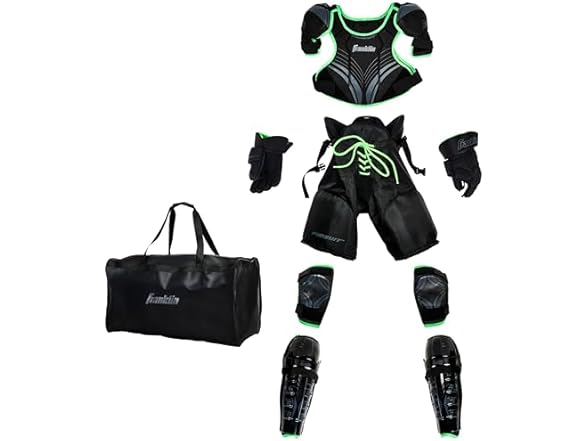 - COMPLETE SET: This set includes everything youth hockey players need — shin guards, hockey pants, elbow pads, gloves, chest protector and a carry bag — to ensure they're fully covered on the ice.