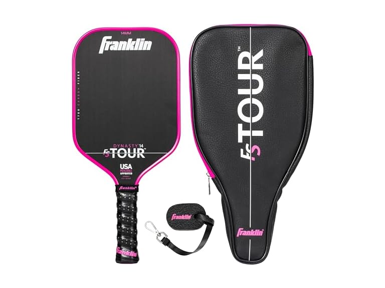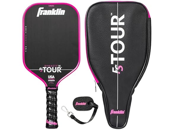 - (1) Franklin Sports Pro Pickleball Paddle Set - FS Tour Series Carbon Fiber Pickleball Paddle, Paddle Cover + Paddle Eraser - Official USA Pickleball (USAPA) Approved Paddle Set - Dynasty 14mm Core - Pink