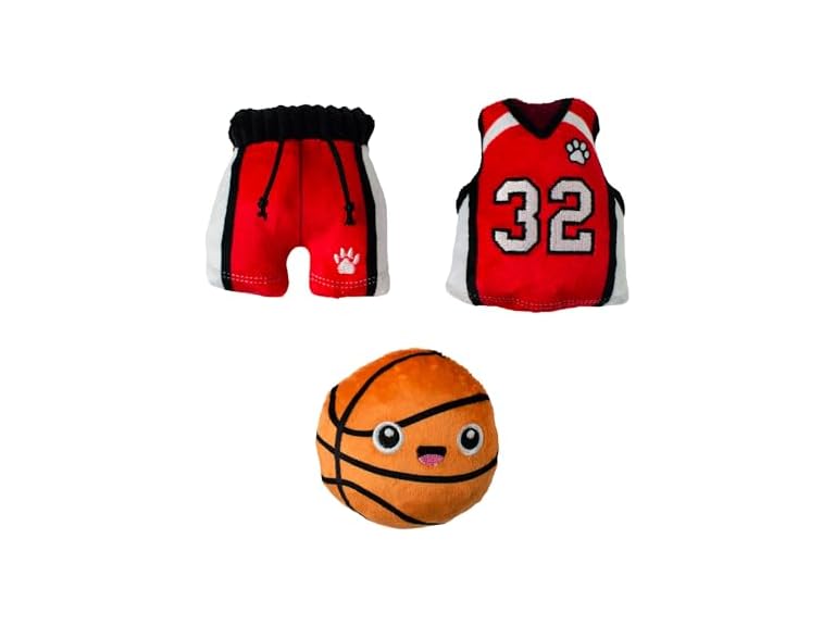 - Each toy is approximately ; Jersey- 3.75" h x 3" w, Ball- 3.5" h x 3.5" w, Shorts- 3.5" h x 3.25" w