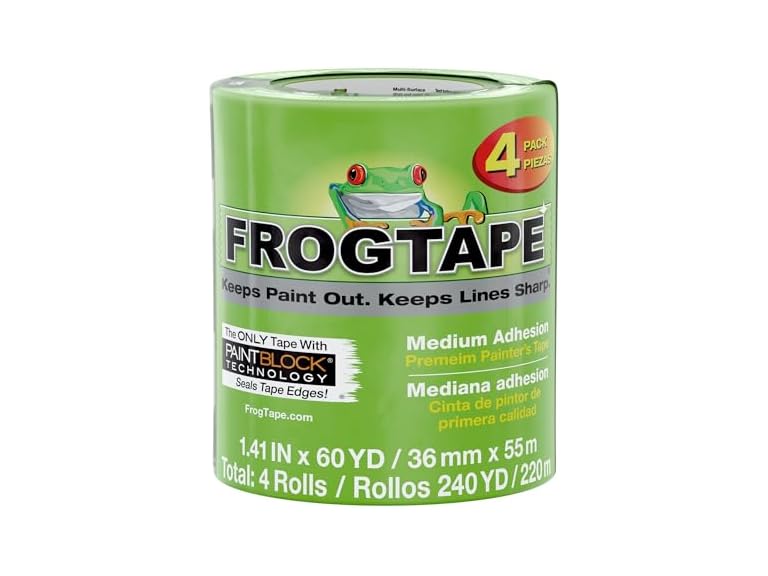 - FROGTAPE 240660 Multi-Surface Painter's Tape with PAINTBLOCK, Medium Adhesion, 1.41 Inches x 60 Yards, Green, 4 Rolls