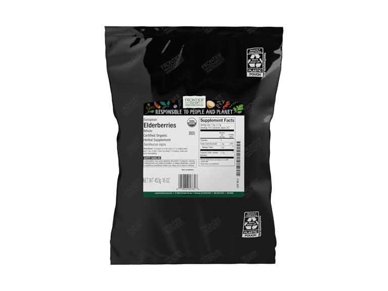 - Frontier Co-op Organic Dried Elderberries, European Whole - Non-GMO Elderberry Berries Dried - For Tea, Immune Support - Kosher | 16 Ounce (Pack of 1)ā