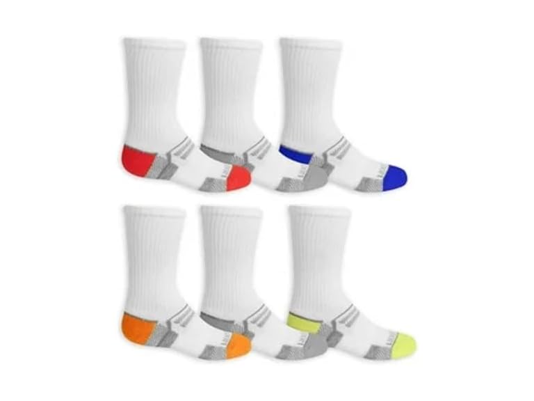 - (1) Fruit of the Loom Boys' Big 6-Pair Half Cushion Crew Socks, White MultiLarge