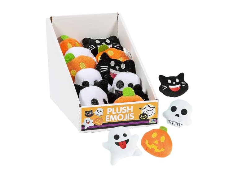 - (1) Fun Express Spooky Halloween Plush Emojis Stuffed Toys - 3.5" (Pack of 12) - Assorted Designs - Perfect for Trick-or-Treat Bags, Halloween Party Favors, and Themed Decorations