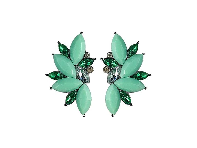 - (1) 80s Funky Punk Rock Spiky Angel Wings Oversized Colorful Stones Studded Candy Cluster Women Statement Stud Earrings in Mint Green (Mint Green)