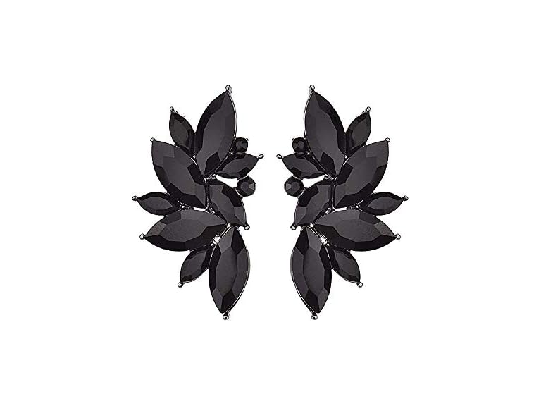 - (1) 80s Funky Punk Rock Spiky Starburst Angel Wings Oversized Colorful Stones Studded Candy Cluster Women Statement Stud Earrings (Jet Black)