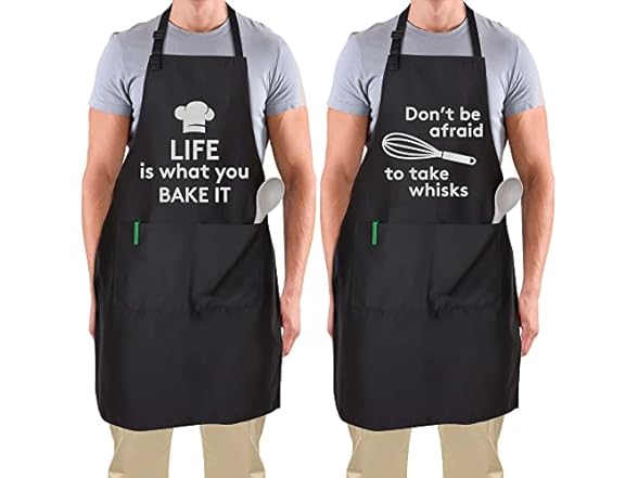 - FUNNY APRONS FOR MEN AND WOMEN: Our punny and fun cooking aprons, printed with cooking puns and catchphrases, will put a smile on everyone’s face. Enjoy quality time cooking in the kitchen with your loved ones, have fun grilling delicious food for your family, or spend time working on your favorite arts & crafts activity with our aprons.