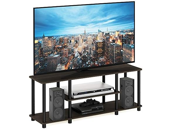 - (1) Furinno Turn-N-Tube No Tools 3D 3-Tier Entertainment TV Stand up to 50 inch TV, Round Tubes, Dark Brown / Black