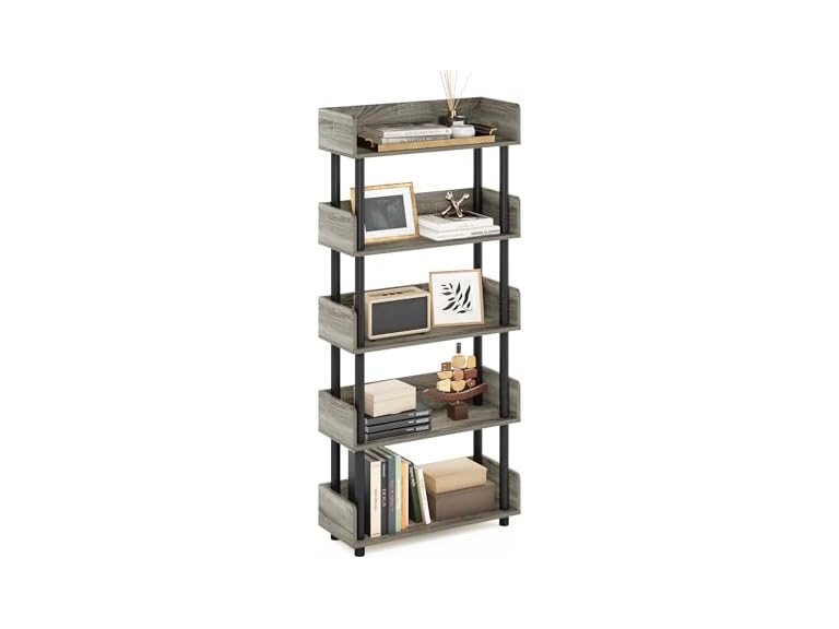 - (1) Furinno Turn-N-Tube 5-Tier Toolless Display Rack, French Oak/Black