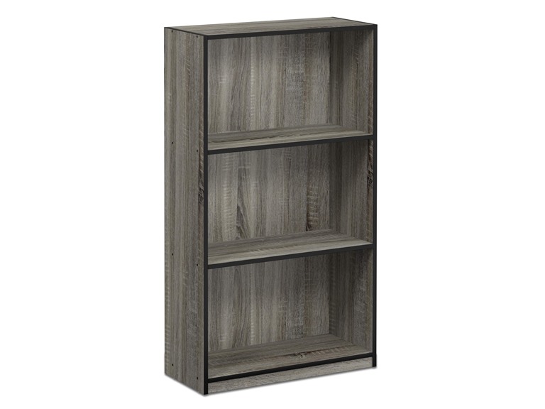 - (1) FURINNO Basic 3-Tier Bookcase Storage Shelves, French Oak Grey/Black