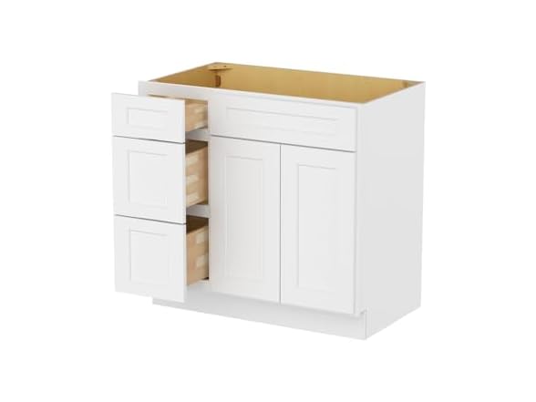 - (1) Furinno Shaker Drawers Left Bath Vanity Cabinet Without Top, Ready to Assemble, 21 D x 36 W x 34.5 H, White